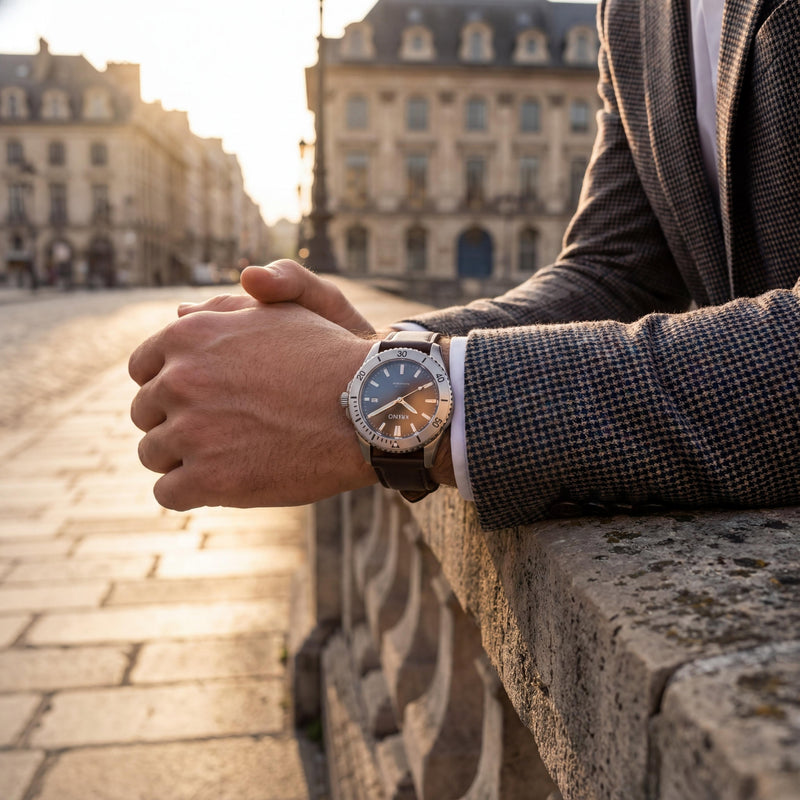 Our watches deliver premium finishing, high-grade steel and aesthetics inspired by high-end watchmaking — all at a fair and accessible price. You get the look, feel and presence of a luxury watch without paying hundreds of euros more.
